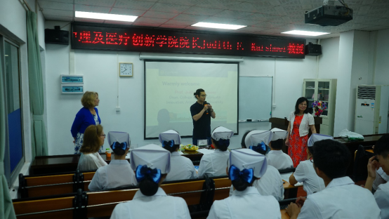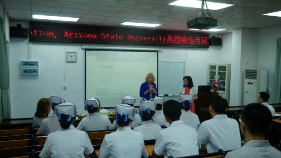 2019年6月21日上午,美国亚利桑那州立大学(Arizona State University,简称ASU)护理及医疗创新学院院长Dean Karshmer与美国旧金山东华医院行政总裁张建清博士来访我院,并在我院护理实验实训中心示教室开展了一场宣讲会,同时与有意赴美攻读研究生的学生进行了面对面的沟通交流。