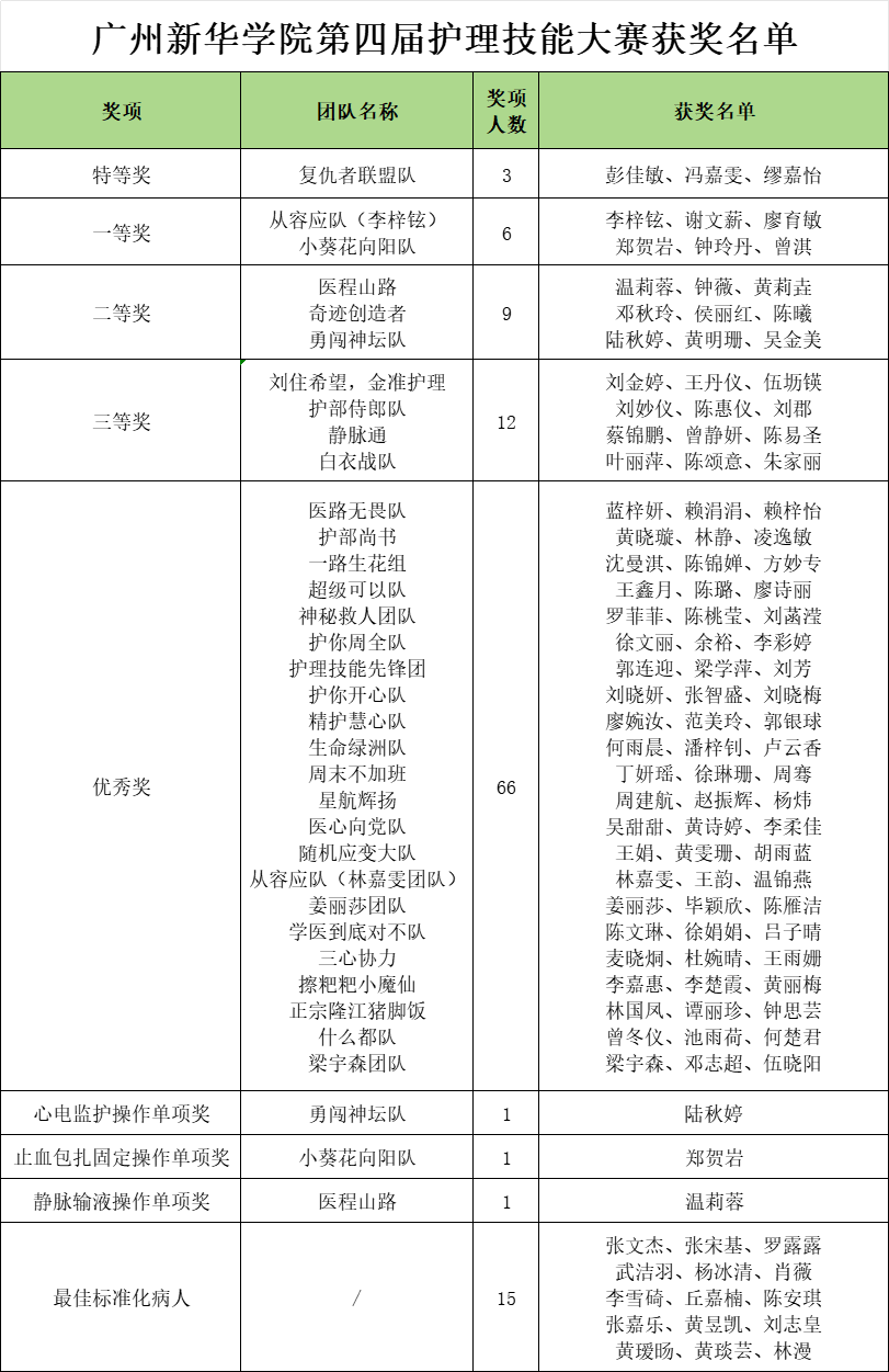 经评审组严格评定,决赛最终评选出团队特等奖1一等奖2组、二等奖3组、三等奖4优秀奖22组以及单项奖3名。大赛还对优秀志愿者及最佳标准化病人进行颁奖,黄洛莹副院长对评委老师团队和幕后工作人员表示感谢,对全体参赛选手表示衷心的祝贺。王秀岚院长为获奖团队颁奖时表示:“大赛不仅是技能的比拼,更是职业信仰的传递。校友回归、师生同台,彰显了新华护理人的传承之力!”