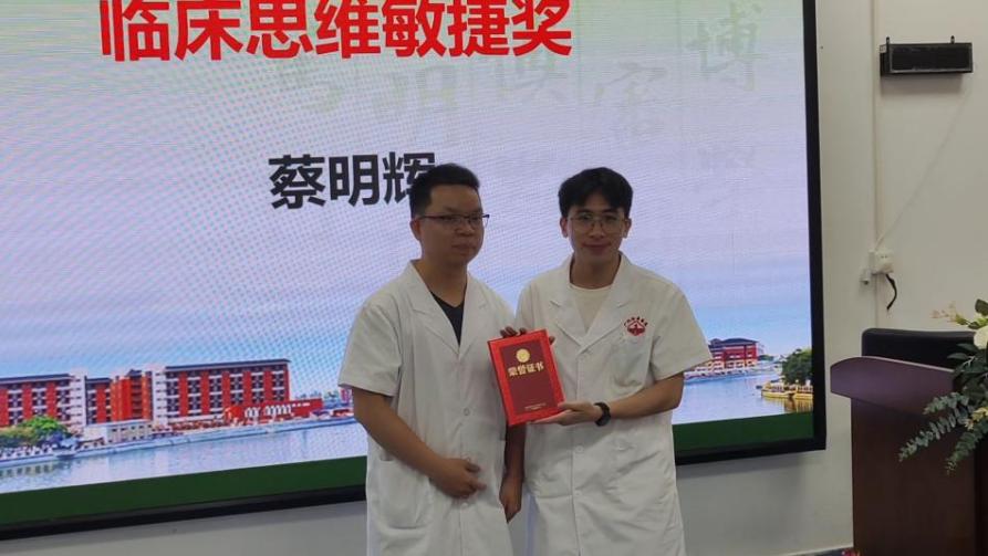 余金吨老师(2013级校友)为蔡明辉颁发“临床思维敏捷奖”证书