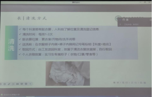 会议的最后,黄萍老师向大家强调了安全的重要性,在做各项操作的时候,要注意做好自身的防护和保护好病人的隐私。在实习的过程中要充分利用医院的学习资源,虚心请教自己的带教老师,为自己的实习工作生活绘制一幅多姿多彩的画卷。