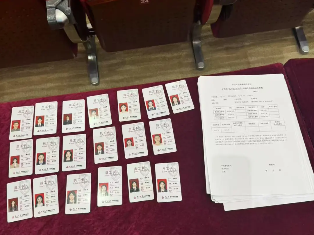 初步安顿好个人内务后,同学们于6月30日一早前往医院学术厅办理正式的报到手续。在医院老师们的悉心安排下,大家有序领取了实习工服、实习生手册以及医院门禁卡等必备物资。老师们还贴心地介绍了医院的整体布局和主要科室分布,帮助同学们在踏入临床前对工作环境有了初步印象。