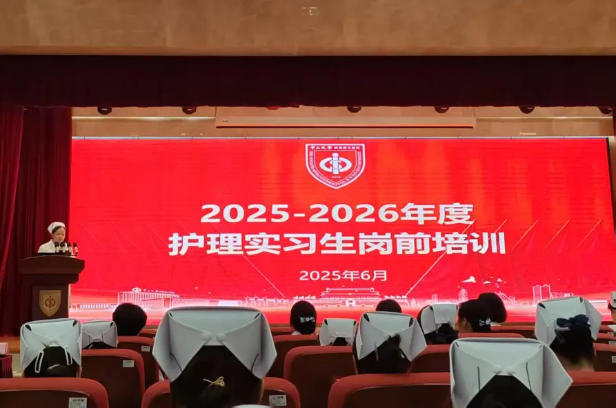报到当天(6月30日)上午8:30,全体护理实习生准时在中山七院学术厅参加了护理部精心组织的岗前培训。护理部及各科室护士长围绕实习生安全规范、请假制度、护理伦理、职业礼仪等核心内容进行了详细讲解。培训中,老师们结合丰富的临床经验和生动的实际案例,深入浅出地为实习生们传授了宝贵的实践知识和技能要点,为即将开始的临床实习奠定了坚实的安全和理论基础。