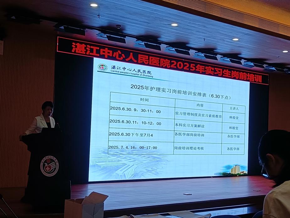 报到当日,湛江市中心人民医院教学培训科陈瑞老师细致周到地为实习生们提供协助。陈老师不仅提前妥善安排好了同学们的住宿事宜,还协助大家登记办理职工食堂饭卡,并详细告知了岗前培训的具体安排和相关信息。次日,护理部副主任林筱莹召开实习生岗前培训会议,为大家详细介绍了实习的注意事项等事宜,旨在最大限度地为实习生们排忧解难,帮助大家以最快的速度熟悉环境、融入角色,顺利适应并投入到紧张的临床实习生活中去。