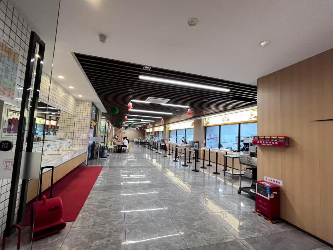 随后,同学们在引导下前往位于空中花园旁的职工食堂。该区域依托空中花园的自然景观,玻璃幕墙引入充足光线,绿植环绕其间,环境整洁雅致,为医护人员提供了舒适的就餐与休憩空间。