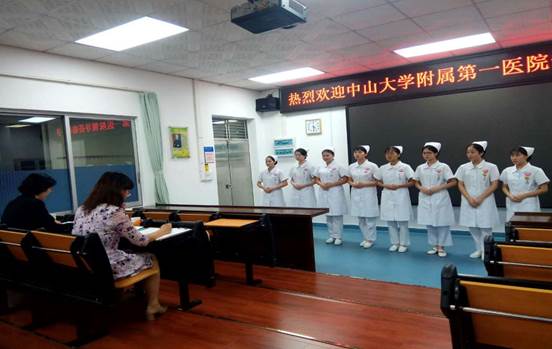 2019年11月11日下午,阳光明媚,微风阵阵,中山大学附属第一医院(以下简称“中大附一”)护理部陈利芬副主任、陈玉英护士长来我校beat365中文登录入口面试护理实习生,此次面试对象是17级护理学生,参与这次实习招聘面试的同学共有86人。