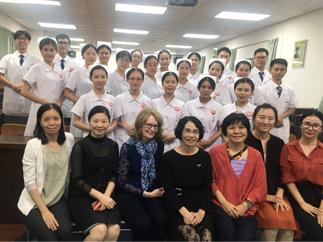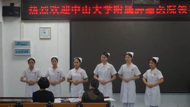 本次招聘会每六名学生为一组进行面试,按顺序依次进行。辛主任及黄中英老师首先介绍了关于医院的一些基本情况,如规章制度、护理的注意事项,以及与病人沟通的重要性等。接下来,面试学生开始一一自我介绍,对辛主任及黄中英老师提出的各种护理基础知识问题,如“CPR抢救流程”、“皮下注射的注意事项”等,学生们对答如流,更表达了对中山大学附属肿瘤医院的拳拳喜爱之心,充分展现了我院学生扎实的护理基础知识和良好的精神风貌。