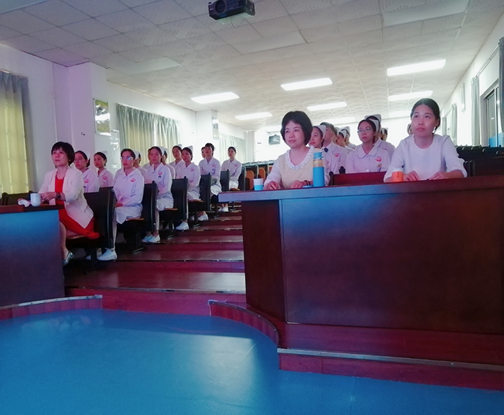 图二:老师和同学们一起观看珠江医院宣传视频
