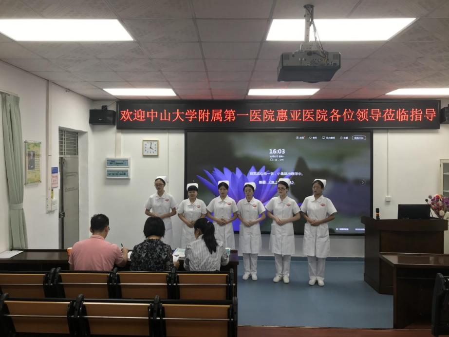 11名参加面试的同学已准备就绪,我院党总支书记于凤兰和同学们一起等待着中山大学附属第一医院惠亚医院护理部主任吴婉玲和护士长夏冬梅及李玉龙老师的到来。