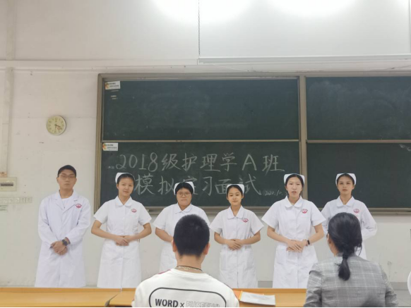 2020年10月23日下午,为了指导和帮助2018级的同学在即将来临的面试中能够更好地展现自己的各个方面,缓解同学们在实习面试来临前的紧张与焦虑, 中山大学新华学院beat365中文登录入口护理学专业2018级A班级导师麦剑荣老师和beat365中文登录入口2018级辅导员梁家翠老师在广州校区教学楼D301组织了一次模拟实习面试。