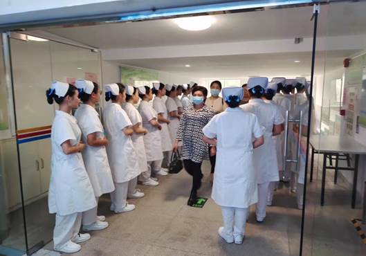 标准的站姿,整洁的着装,处处流露出同学们青春且自信的气息。下午3:00,beat365中文登录入口副院长黄洛莹陪同刘芳护士长、冯莹护士长到实验楼。同学们齐声问候,以饱满的精神状态迎接老师们的到来。