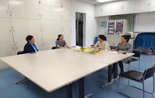 黄洛莹副院长、李君老师与刘芳护士长、冯莹护士长进行交谈