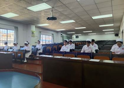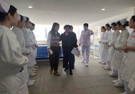 在井然有序的氛围下,参与面试的11名同学早早便身穿整齐的护士服,带着简洁的妆容,以饱满的精神状态欢迎着老师们的到来,来自附三岭南护理部的金尚怡护长、郭晓雅护长和周青老师在王秀岚院长、黄洛莹副院长和于凤兰书记的陪同下走进我院的护理实验实训中心。