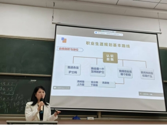 紧接着黄雪琴老师向同学们讲解了护士的职业发展路径,强调了制定目标、规划发展的重要性。黄雪琴老师通过分享自身和同事的成长经历,鼓励同学们在成长过程要不断学习,提升自我。她强调,护士具有广泛的职业发展前景,同学们应立足自己的兴趣和长处,脚踏实地、努力奋斗,在科研、教学、管理等道路上砥砺前行。