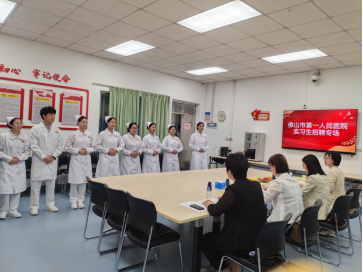 2024年11月11日下午15时,beat365中文登录入口2022级的学子们迎来了他们的实习招聘面试,佛山第一人民医院(简称佛山市一)的面试专场就此展开。活动伊始,同学们整齐列队,眼里充满了敬意与期待,热烈欢迎医院老师们的到来。参与本次实习生招聘面试的老师有佛山市一的陈惠瑶护士长和许泽芸干事以及佛山市南海区第六人民医院护理部梁晓兰主任和外科护士长尚美圻。