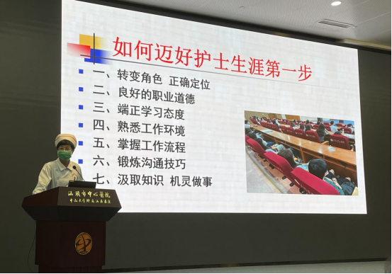 报到当天,护理部郑泽丽老师热情地接待我们,给大家办理实习报到的相应手续并带领我们熟悉科室的环境。我们各自领取自己的胸卡,泽丽老师简单介绍了医院的基本环境,并具体讲解了实习期间的注意事项,其中特别强调了安全问题,包括工作及生活中的各类安全问题,以及医院的规章制度,使同学们更快地熟悉临床工作,为之后进入临床奠定了基础。