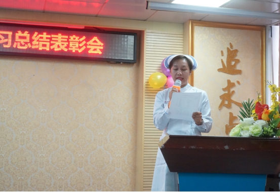 图七:市二院护理部路海云主任宣读优秀实习生名单