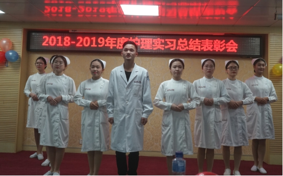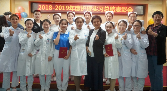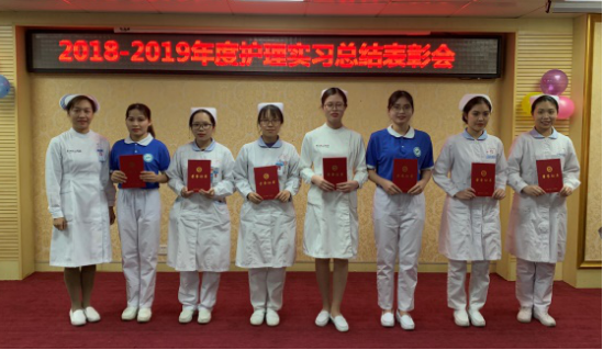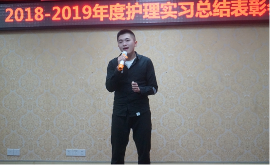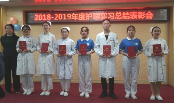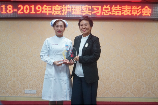 随后,由护理部路海云主任、科教科刘晓鹏主任分别为15名优秀实习生进行颁奖,其中我院廖美玲、刘秋娟同学作为优秀实习生上台领奖。