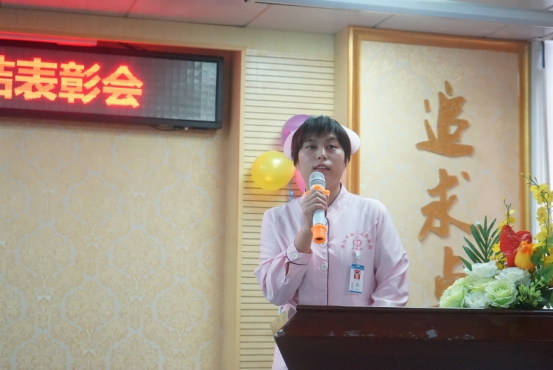接着,临床优秀带教组长许雪洁老师上台分享了带教心得,她对实习生们在实习期间付出的努力给予肯定和鼓励,同时还表扬了我院的廖美玲同学在实习期间善于思考,勇于发现问题。同时也指出部分护生仍需在培养临床思维能力方面继续努力,希望她们秉承南丁格尔精神,以优秀实习生为榜样,将临床技能与理论知识相结合,为患者提供更加优质的护理。