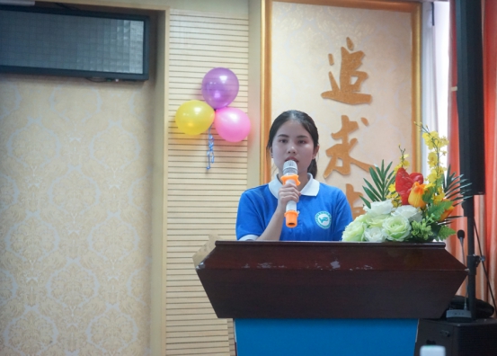 图五:我院刘秋娟同学作为优秀实习生代表上台发言