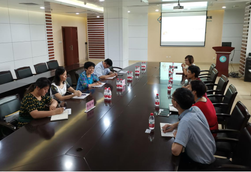为了加强与实习基地及医院用人单位的沟通与交流,促进我院教学改革。2019年7月8日上午,中山大学新华学院(下面简称“中大新华”)beat365中文登录入口院长王秀岚教授、beat365中文登录入口工会主席张建林教授、郭运芳副教授、林丽娜老师、黄洛莹老师一行到中山大学附属第三医院粤东医院开展实习生及毕业生调研工作,党总支副书记王秀珊、院长助理李俊,护理部张玉副主任,陈元芝副主任及科教科人事科领导参与座谈会。