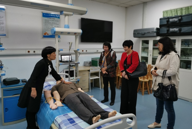 专家们在王秀岚院长的陪同下,首先参观了我院护理实验实训中心,就养老照护、日常康复、老人护理等项目的场地、设施及仪器设备等进行了检查和验收。