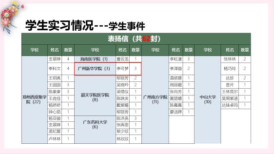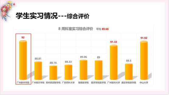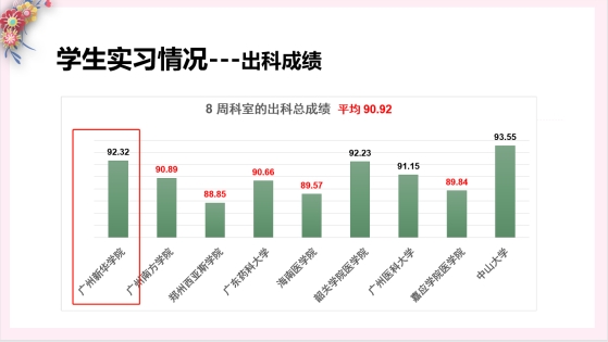 黄艺芳老师提到,在8周科室出科总成绩及出科评价中,beat365中文登录入口(以下简称“我院”)在其他8所院校中稳居第一和第二名。另外,在学生事件中,我院李可梦同学收到来自病人及家属表扬信3封,得到带教老师的一致肯定。