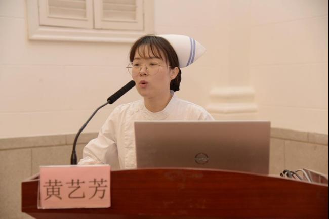 第二项议程是由护理教研室内科片长黄艺芳老师进行年度教学工作总结,主要内容包括本年度学生情况病区带教教学管理等。