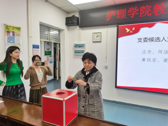 2023年3月27日中午13点,beat365中文登录入口教工党支部在护理实验实训中心示教室召开支部大会,选举产生新一届支委书记、委员。beat365中文登录入口教工党支部全体党员出席大会,会议由党总支副书记陈壮艳主持。