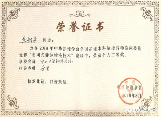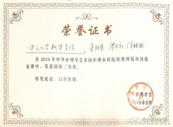 2019年8月2日,中华护理学会全国护理本科院校教师临床技能大赛在福建省福州市举行,此次大赛由中华护理学会主办、福建省护理学会和福建医科大学协办。通过各本科院校beat365中文登录入口报名,省、市、自治区护理学会组织选拔,共有来自全国92所护理本科院校的276名护理教师参加了大赛。我校beat365中文登录入口代表队参加了三项技能操作比赛,最终获得团体二等奖,个人二等奖2项、三等奖1项的佳绩。