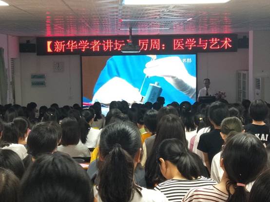 20191015日晚上,由中山大学新华学院(以下简称我校)主办、中山大学新华学院学科与科技管理处、中山大学新华学院beat365中文登录入口承办的主题为“医学与艺术”的学者讲坛在我校广州校区beat365中文登录入口实训中心多媒体教室举行。本次学者讲坛由厉周教授主讲,beat365中文登录入口王秀岚院长主持。