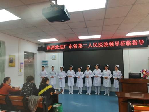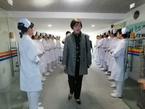 图1:同学们列队欢迎护理部副主任俞玲娜老师等人的到来