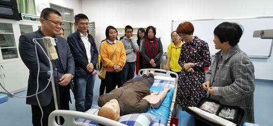 杨科长及王副总裁等专家参观我院的实验室后,对我院的护理教学建设表达了充分的信心。特别是在观摩全功能产妇综合模拟人以及Simman 3G智能高端综合模拟人等先进的教学器材应用时,杨科长充分赞扬了我院对护理教学的热诚并对我院护理教学建设的专业性和前瞻性给予肯定。