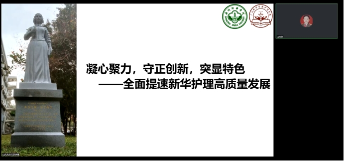 2023年3月23日,王秀岚院长以“凝心聚力,守正创新,突显特色,全面提速新华护理高质量发展”为主题进行首次分享,36位教师通过腾讯会议参加此次读书报告会。办公室主任周玲主持。