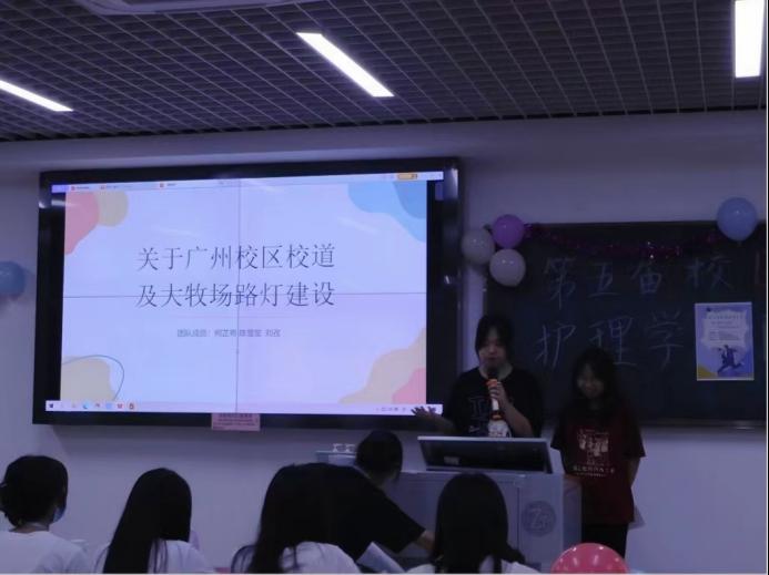 第二支队伍的提案是基于晚修下课后,同学们普遍认为学校的路灯比较暗,尤其是校道和大牧场灯光太暗。天气转热,晚间散步成为很多同学们的青睐,很多爱好跑步的同学会选择绕校园夜跑,由于路灯太暗,不能给同学们的安全提供保障,因此提出关于建设路灯的提案。