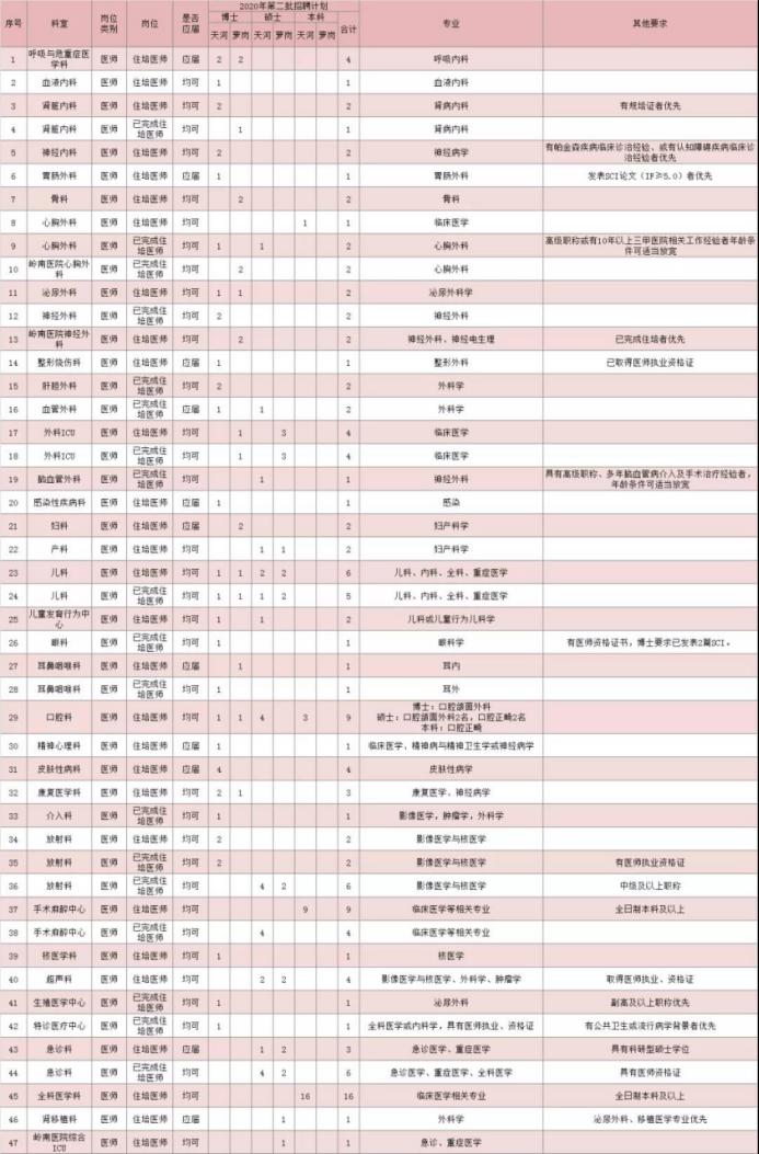 中山三院2020年第二批医教研、护理、管理岗位招聘启事