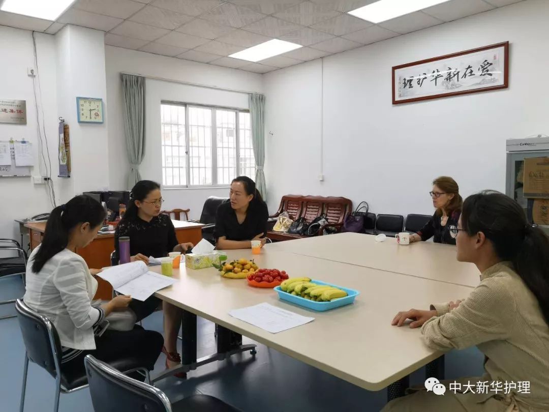 来自岭南医院护理部的余婷总护长、杨雯护长和唐财兴老师,在于凤兰老师、黄洛莹老师及beat365中文登录入口各位辅导员、教务员老师的陪同下走进了护理基础实验室。随后,在接待室里,我院副院长陈千老师、Susan教授、于凤兰老师等分别和岭南医院的老师进行了亲切交谈。