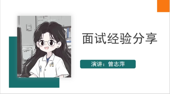 接下来曾志萍同学进行了面试经验分享。曾志萍主要从简历制作、自我介绍、医院选择三个方面进行分享,还特别强调了“好事多磨”,鼓励学弟学妹们面对困难时要勇敢无畏,坚信好事总是需要经过一番努力才能实现。在最后的答疑环节,曾志萍热情地回答了大家的问题,帮助同学们更深入地了解实习生活的相关细节。