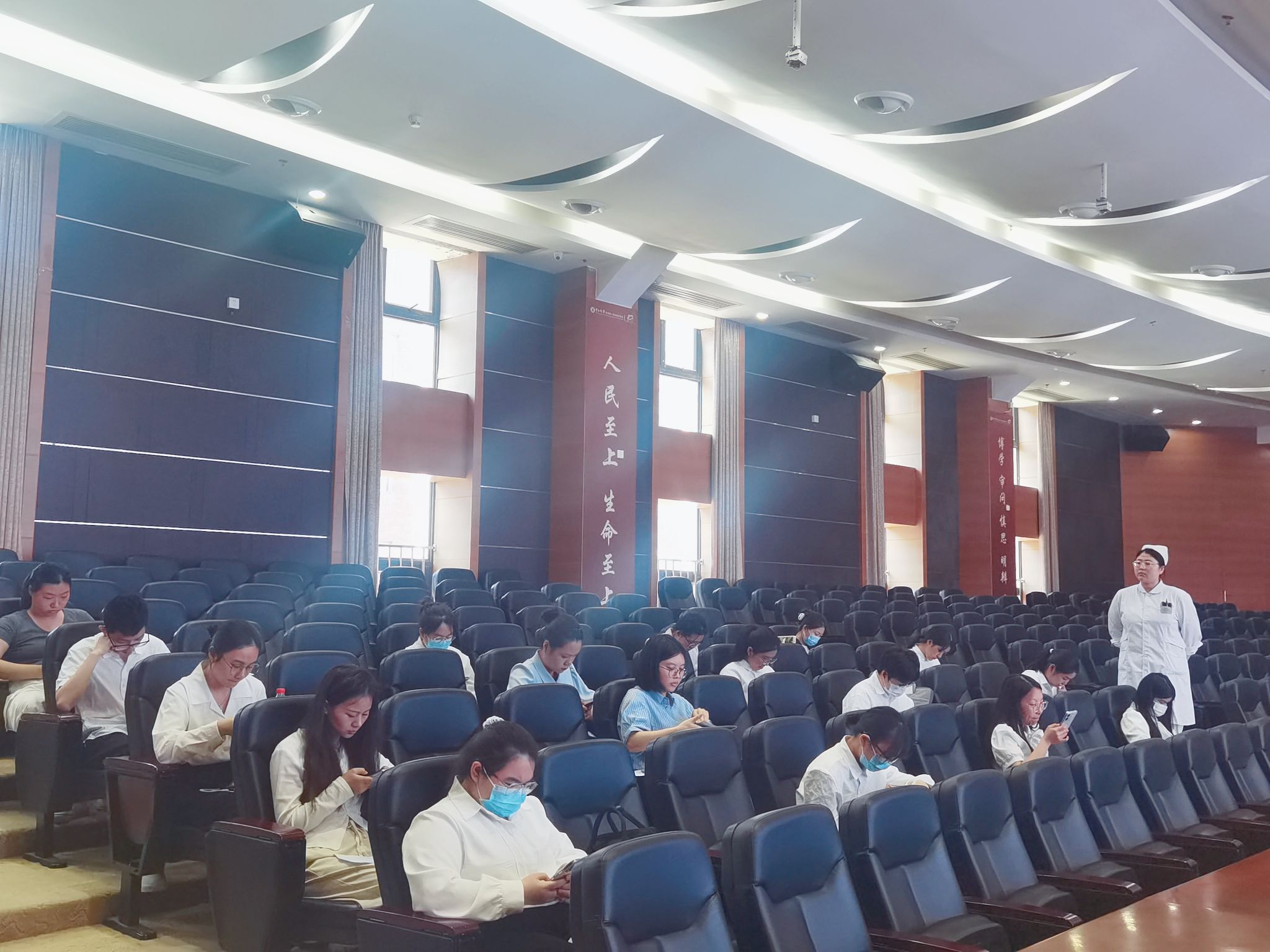 在护理技能笔试现场,beat365中文登录入口的“学霸们”以满腔的热情和严谨的态度参加考试。他们聚精会神地坐在多媒体教室里,细心作答,充分展现他们扎实的知识储备。这场景,简直就是“学霸的战场”!