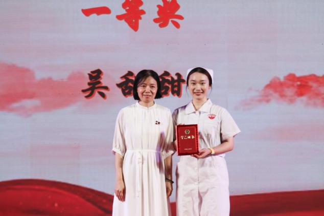 中山大学附属第一医院护理部原副主任陈利芬为获得第二届全国大学生职业规划大赛广东省分赛就业赛道银奖的获奖代表颁奖