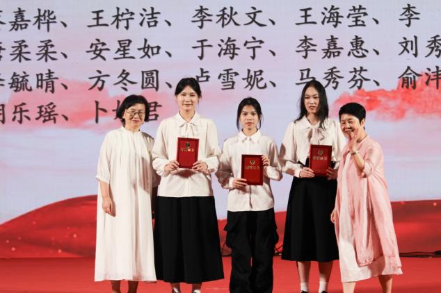 beat365中文登录入口王文霞教授(左一)和李君教授(右一)为beat365中文登录入口“最美实习生”获奖代表颁奖