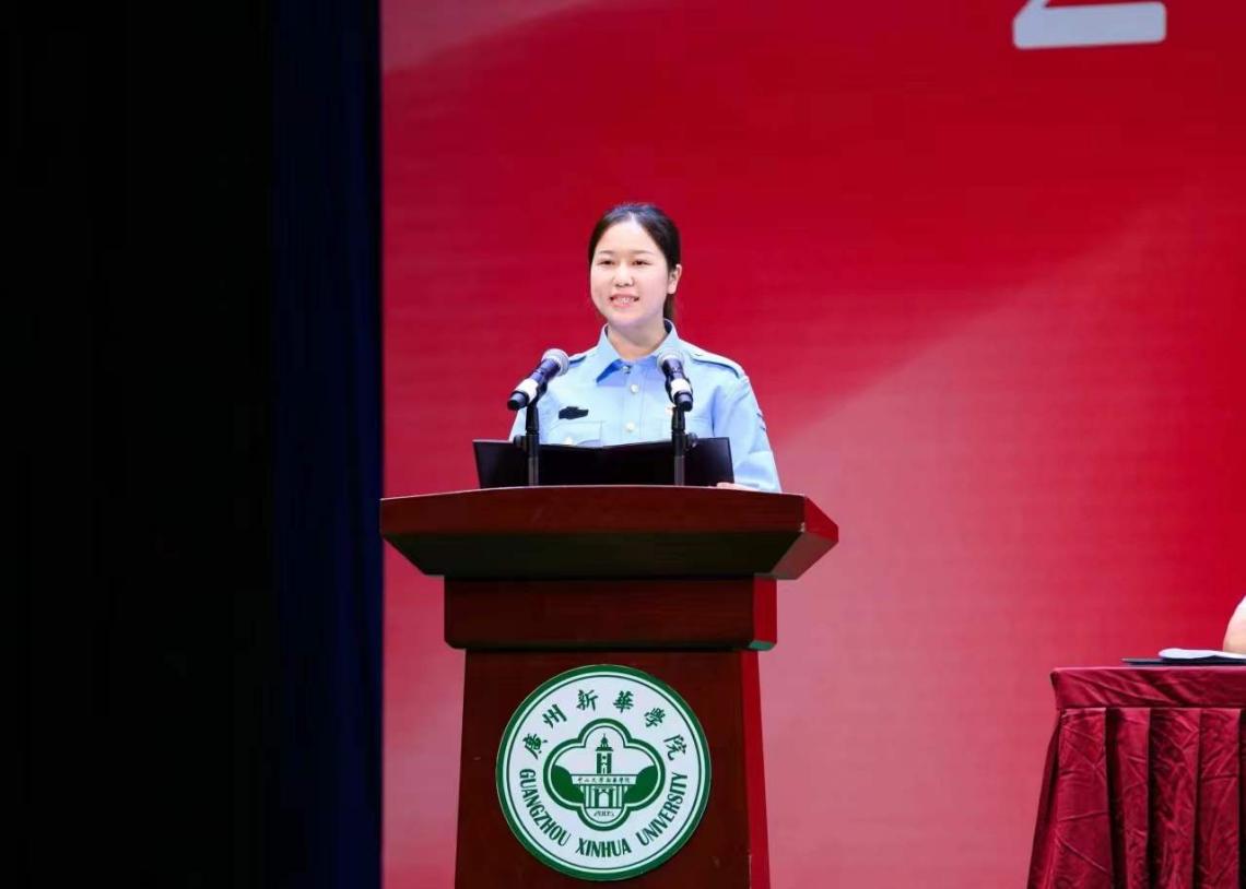 钟泳欣作为学生代表在beat365中文登录入口2023年新生开学典礼发言