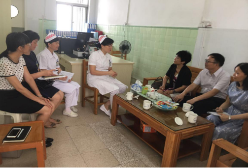 为了加强与实习基地及医院用人单位的沟通与交流,促进我院护理本科教学改革与发展。2019年7月9日上午,中山大学新华学院(下面简称“中大新华”)beat365中文登录入口执行院长王秀岚教授、张建林教授、郭运芳副教授、林丽娜老师、黄洛莹老师一行到汕头市中心医院开展实习基地建设及毕业生质量调研工作,汕头市中心医院护理部周玉华主任、邹海棠副主任,郑泽丽老师及就职于汕头市中心医院的中大新华毕业生及实习生等参加座谈会。