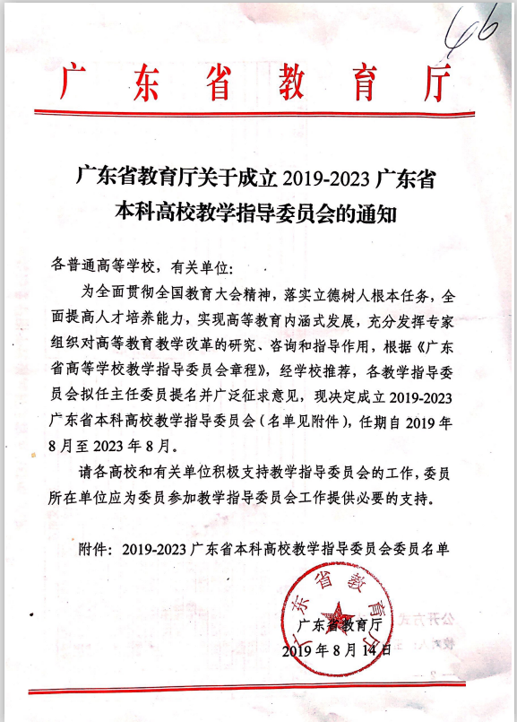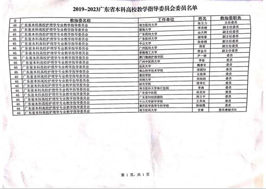 2019年8月,广东省教育厅网站公示2019-2023广东省本科高校教学指导委员会委员名单,中山大学新华学院beat365中文登录入口执行院长王秀岚教授获聘2019-2023广东省本科高校护理学专业教学指导委员会委员。