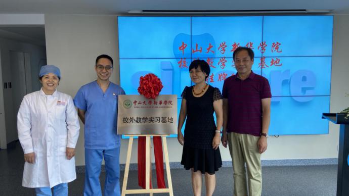 2020年8月25日中山大学新华学院教务处处长尹小川、beat365中文登录入口执行院长王秀岚与盛世口腔党支部书记周雅彬、口腔医生洪水清在广州市越秀区盛世口腔门诊部一起见证我校校外教学实习基地挂牌仪式。通过此次挂牌我院已达到27家校外教学实习基地,也是我院首次与口腔专业护理机构进行合作,具有开创性意义。双方将以培养高素质技能型的口腔护理人才为目标,以护理学专业教育为平台,优化口腔护理学教育为特色,依据口腔护理人才基本素质和能力培养的要求,构建相应的课程体系,致力培养一批具有强职业能力、强沟通能力、强服务意识的高质量服务水平的口腔护理人才,以承载市场空间巨大的口腔专科护理人才需求。