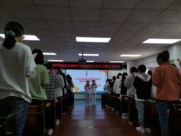 2020年10月14日上午11:00,beat365中文登录入口2020级217名新生在护理实验实训中心示教室参加了本年度实验室安全责任书签订宣讲会。