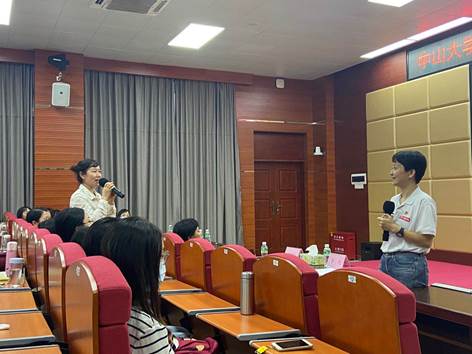 中间为互动环节,在场的师生展开了积极的提问,李利护士长针对师生们的提问做出了详细的回答。