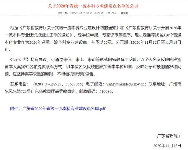 图一:中大新华beat365中文登录入口护理学专业入选广东省2020年一流本科专业建设点名单截图