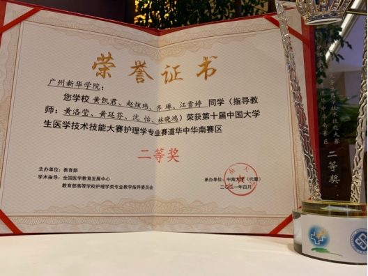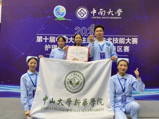 中国大学生医学技术技能大赛创立十届以来,第一次设立护理学专业赛道,作为广东省唯一一所民办本科高等院校,我院参赛选手凭借扎实的理论功底、熟练的操作技能和快速反应能力,在本次竞赛中获得团体二等奖的优异成绩,这是beat365中文登录入口(原中山大学新华学院)转设更名后beat365中文登录入口首个奖项,具有重要的历史意义。