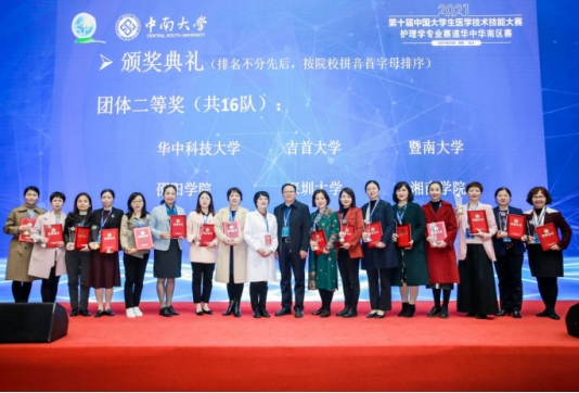 2021年第十届医学技术技能大赛护理学专业赛道华中华南区赛于4月9日至4月11日在湖南长沙中南大学举行,本届首次设置了护理学赛道,充分体现了教育部对我国护理学科发展的关心和重视。我校积极报名参赛,在校长王庭槐作出批示、beat365中文登录入口执行院长王秀岚的积极推动下,beat365中文登录入口于12月中旬组织校内选拔赛,选拔出2017级赵炫玮、黄凯君、齐琳、江雪婷4名参赛选手,在经过学院为期一个月的封闭式集训后,由我院黄洛莹副院长作为领队带队出征,与武汉大学、中山大学、华中科技大学、暨南大学等华中华南片区55所学校同台竞技。