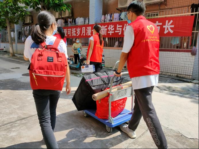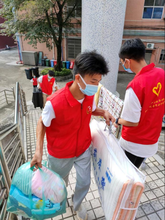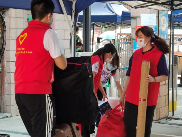 图为beat365中文登录入口志愿者为新生搬行李